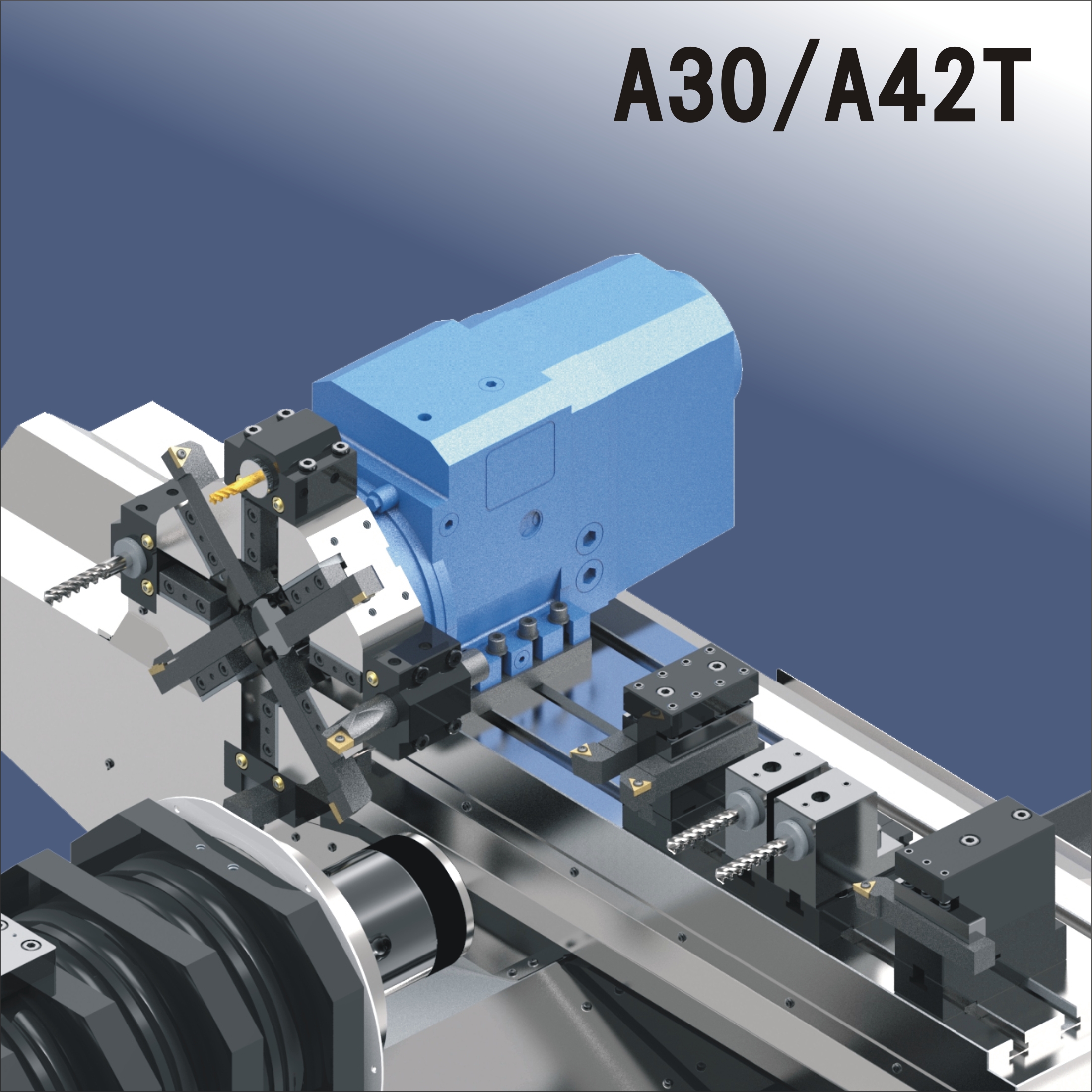 ♦於櫛式滑板加8位非動力刀塔且可配合櫛式刀座,提供12-13支